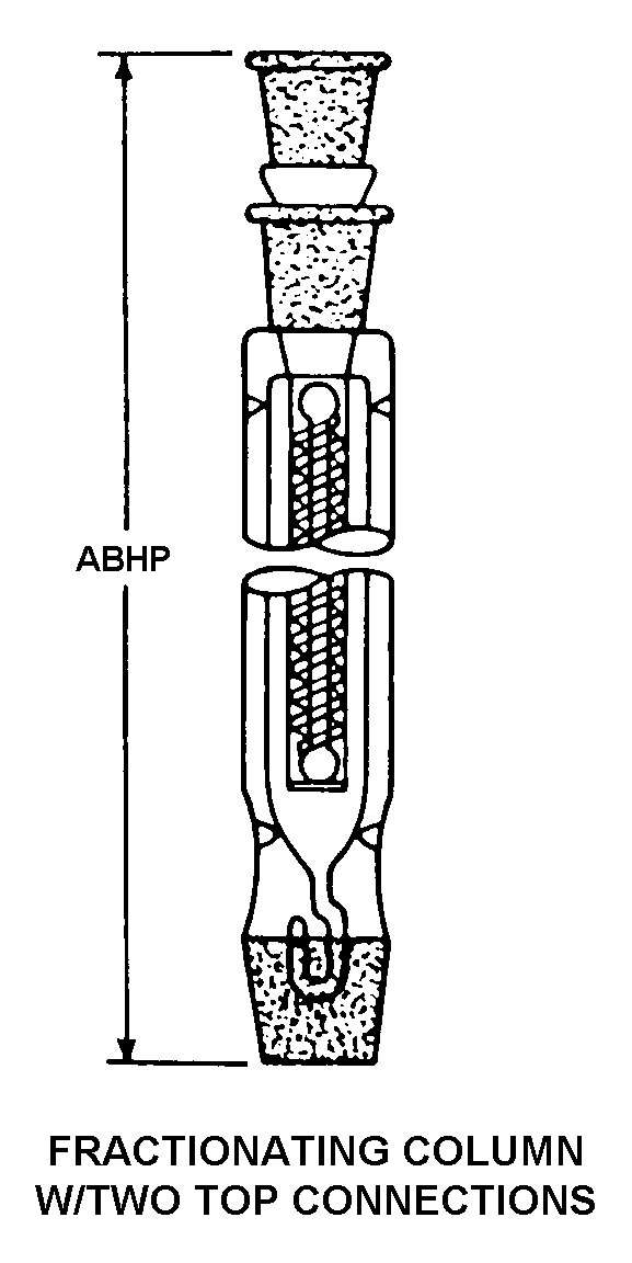 6640-00-494-3954 A tubular shaped device inserted into the neck of a boiling flask to convert it into a distilling flask. The vapor path is a succession of bulbs, and/or partial obstructions such as balls, baffles, spiral, and the like, to permit accurate control of fractionation.