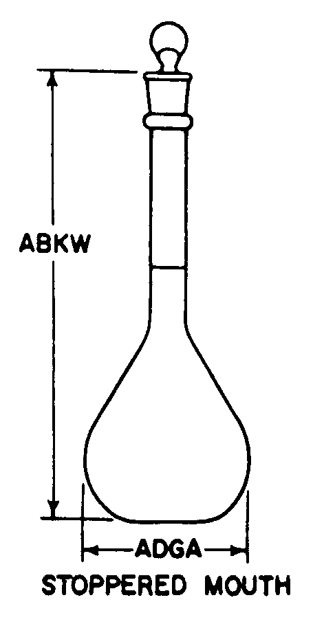 6640-00-815-4165 A flat bottom vessel with a long or short neck designed for use in various laboratory procedures. It is calibrated either to contain and/or deliver, and may be furnished with a stopper or cap.