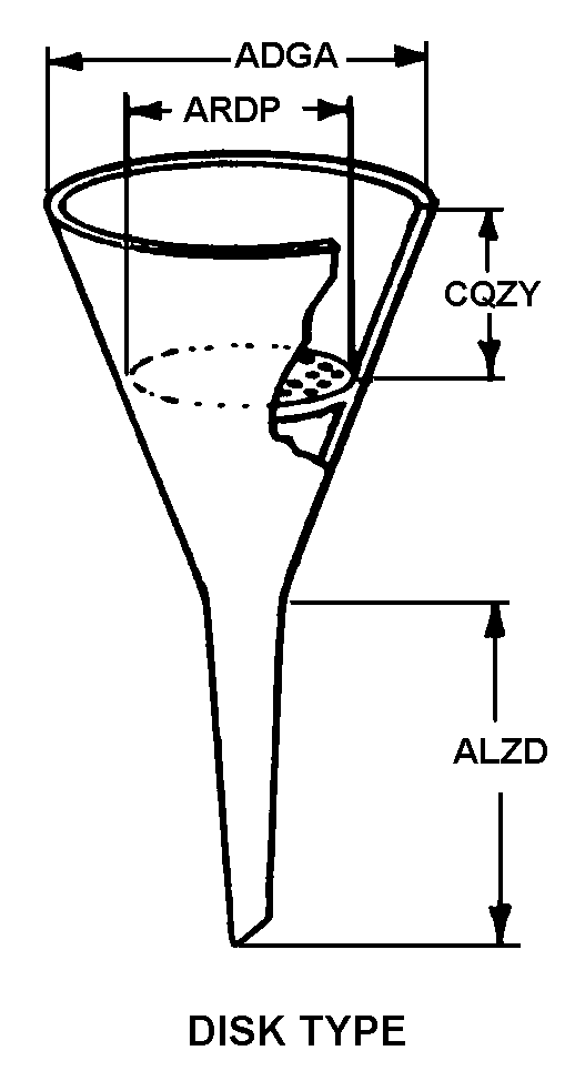 6640-01-352-3535 A device consisting of a cone shaped reservoir with an outlet stem, having a length not greater than five (5) times the diameter of the cone top. It is fabricated of material, and is of a design and size, suitable for laboratory procedures. See also FUNNEL, FILTERING, LABORATORY and FUNNEL TUBE.