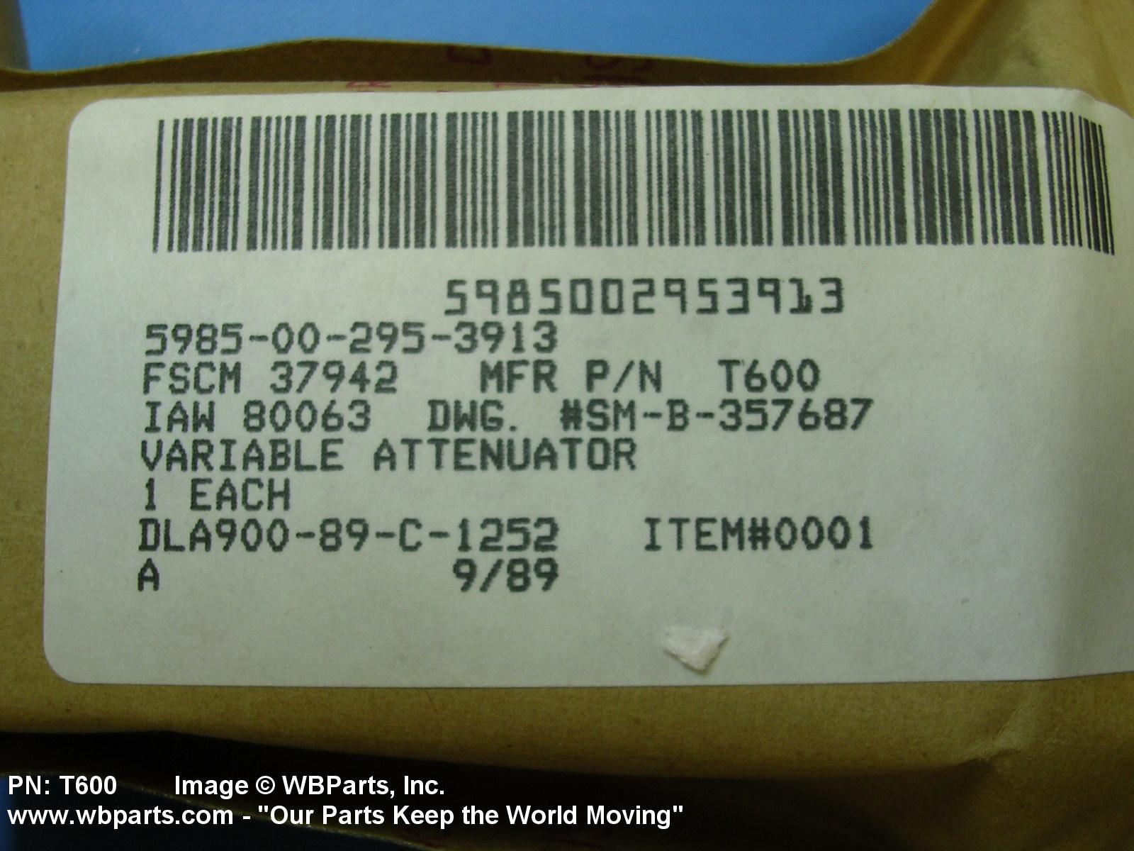Part Alternates: T600, 6640-01-591-8178, 01-591-8178, 6640015918178, 015918178