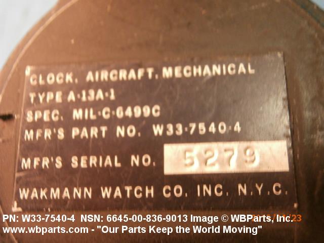 NSN 6645-00-836-9013 MILC6499A, W3375404, W33-7540-4