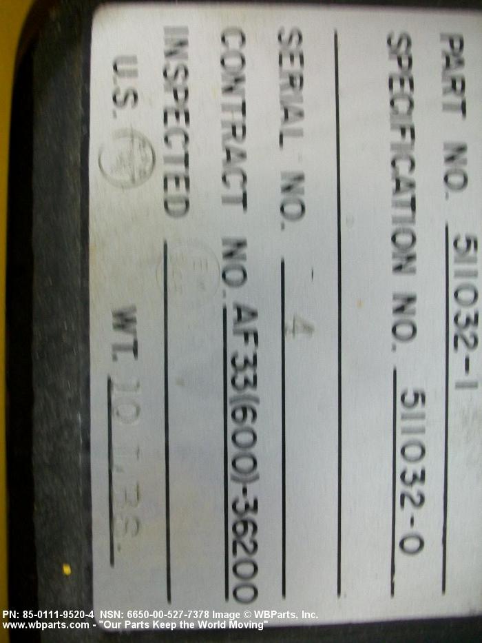 Part Alternates: 4440, 579R418H01, 85011195204, 85-0111-9520-4, 6650-00-527-7378, 00-527-7378, 6650005277378, 005277378