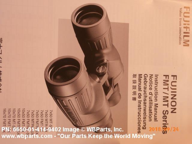 6650-01-414-9402 A hand held optical instrument consisting of two telescopes on a common mounting adapted for stereoscopic use of both eyes of the user. The item may be designed for accommodation of prismatic devices.20212400038Optical Sighting and Ranging Equipment66500063Optical Instruments, Test Equipment, Components and Accessories