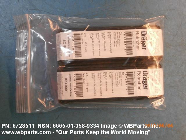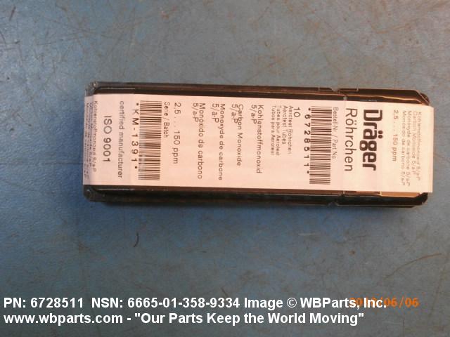 | SPECIAL FEATURES | HERMETICALLY SEALED GLASS TUBE; 6 IN. LONG; FILLED W/INERT CARRIER MATL WHICH HAS BEEN IMPREGNATED W/A REAGENT DESIGNED TO PRODUCE A COLORIMETRIC INDICATION; MEASURES CARBON MONOXIDE; LOWEST MEASURING LIMIT 2.5 PPM AT 0.2 LITERS/MIN FOR 10 MINUTES; USED FOR CHECKING THE QUALITY OF BREATHING AIR SUPPLIED FROM COMPRESSORS OR COMPRESSED AIR CYLINDERS |