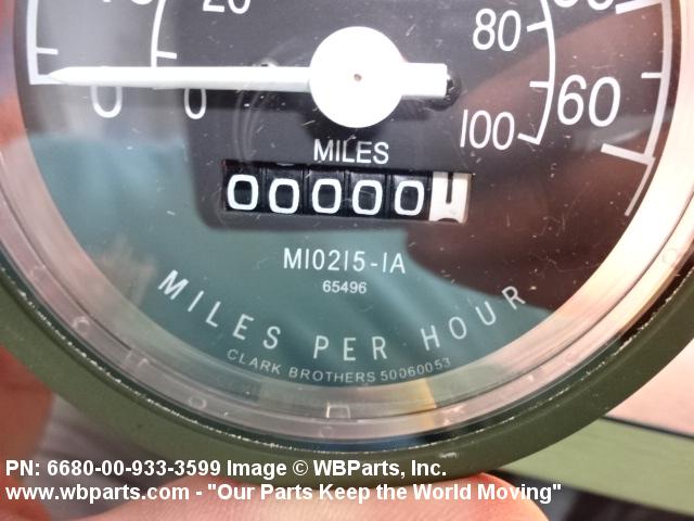 6680-00-933-3599 An instrument for measuring and indicating in miles or kilometers per hour the speed at which a vehicle is being driven. It measures and records distance traveled by means of an odometer. It does not include SHAFT ASSEMBLY, FLEXIBLE.