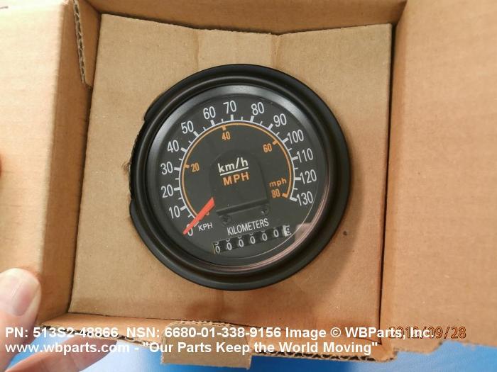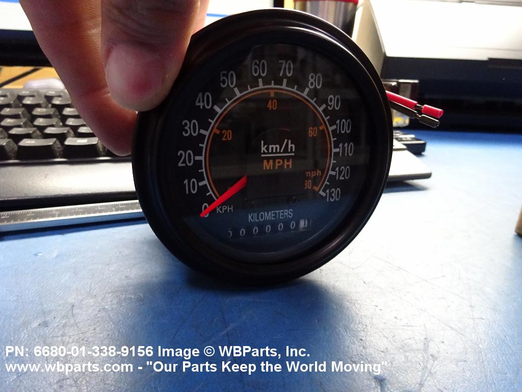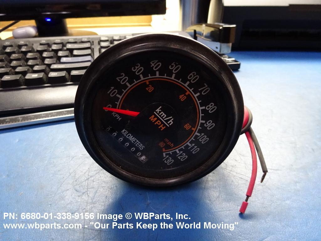 6680-01-338-9156 An instrument for measuring and indicating in miles or kilometers per hour the speed at which a vehicle is being driven. It measures and records distance traveled by means of an odometer. It does not include SHAFT ASSEMBLY, FLEXIBLE.