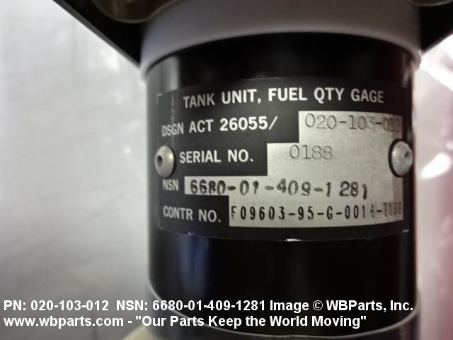 Part Alternates: 020-103-012, 6680-01-409-1281, 01-409-1281, 6680014091281, 020103012, 014091281