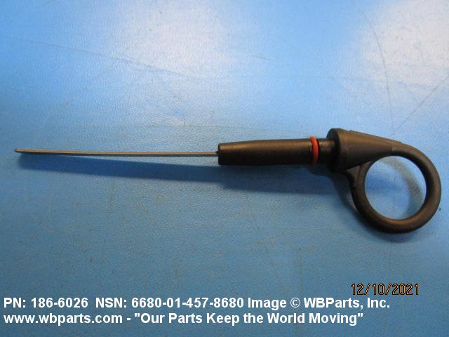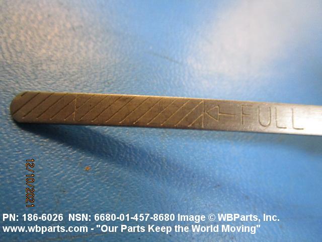 6680-01-457-8680 A thin metal strip, of various cross-sectional shapes, having graduations on one end and a handle on the opposite end. It is designed to be inserted into an engine, pump, or compressor crankcase, transmission, gearcase, fuel tank, or the like, to determine the level of the liquid. For a gage rod with an integral cap, or breather, see GAGE ROD-CAP, LIQUID LEVEL, and GAGE ROD-BREATHER, LIQUID LEVEL. For items designed to measure the liquid level of bulk petroleum tanks, see GAGE STICK, PETROLEUM.