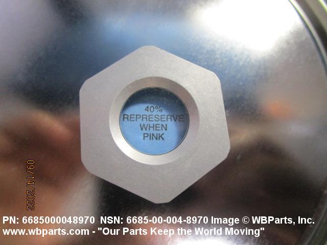 6685-00-004-8970 An item which uses the changing color of a desiccant in the presence of moisture to indicate humidity. The desiccant is in a plug through which the color may be observed and compared with a chart.