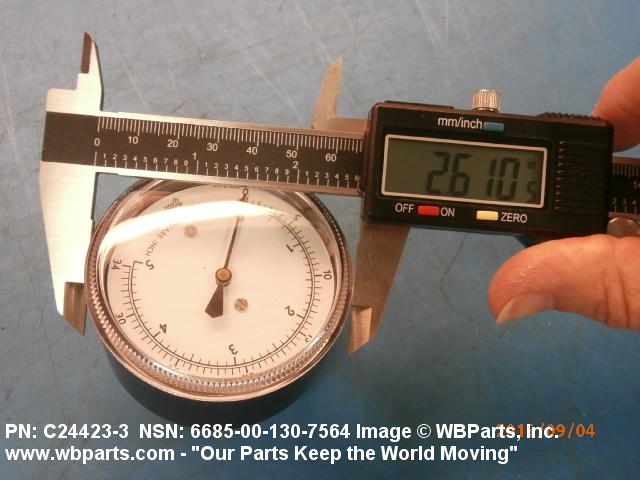 6685-00-130-7564 An instrument designed to measure air, gas, fluid, and vapor pressure by means of an internal pressure sensitive element (bellows, bourdon tube, transducer/transmitter and the like) which transmits energy, by direct linkage, to the indicating pointer of a scale or a digital display, calibrated in units of pressure. It may include a temperature equivalent scale. For items that do not have an internal pressure sensitive element see INDICATOR, PRESSURE.205138600004220000042400027Safety and Rescue Equipment66200018Engine Instruments66850073Pressure, Temperature, and Humidity Measuring and Controlling Instruments