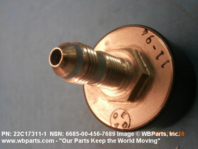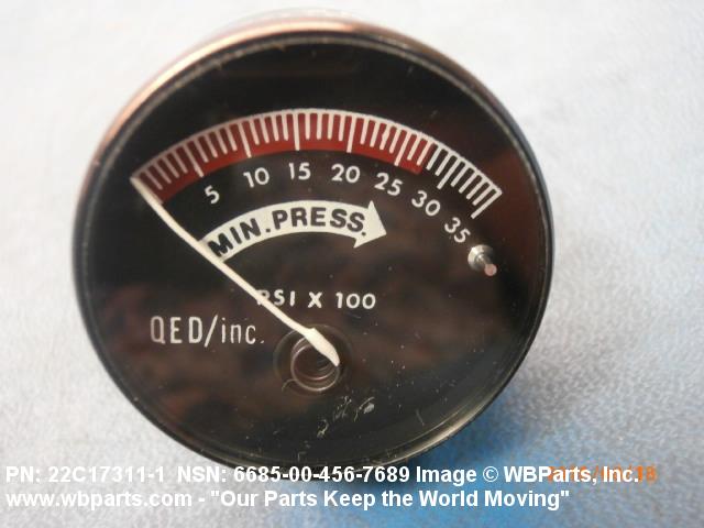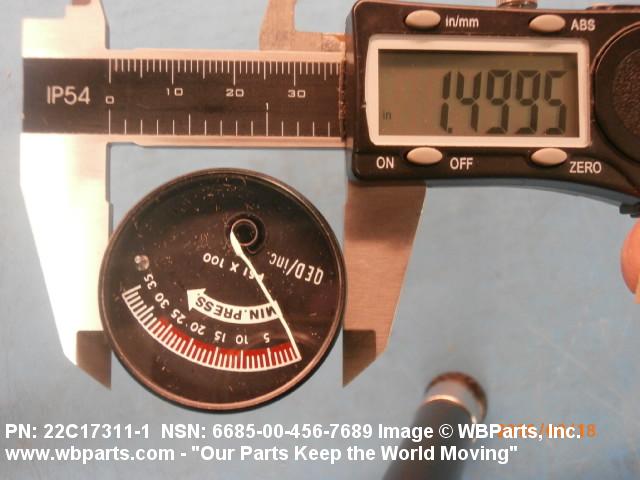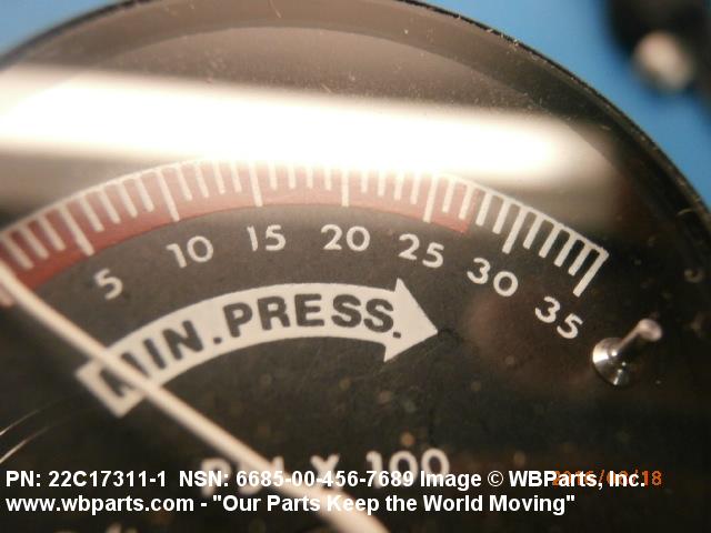 6685-00-456-7689 An instrument designed to measure air, gas, fluid, and vapor pressure by means of an internal pressure sensitive element (bellows, bourdon tube, transducer/transmitter and the like) which transmits energy, by direct linkage, to the indicating pointer of a scale or a digital display, calibrated in units of pressure. It may include a temperature equivalent scale. For items that do not have an internal pressure sensitive element see INDICATOR, PRESSURE.205138600004220000042400027Safety and Rescue Equipment66200018Engine Instruments66850073Pressure, Temperature, and Humidity Measuring and Controlling Instruments