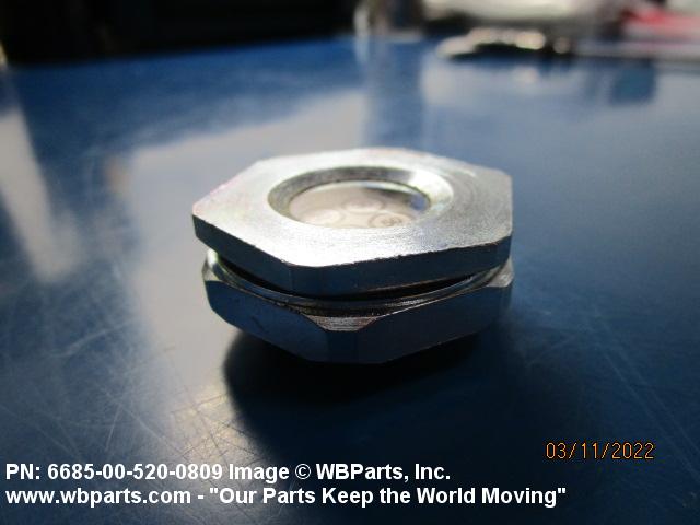 6685-00-520-0809 An item which uses the changing color of a desiccant in the presence of moisture to indicate humidity. The desiccant is in a plug through which the color may be observed and compared with a chart.