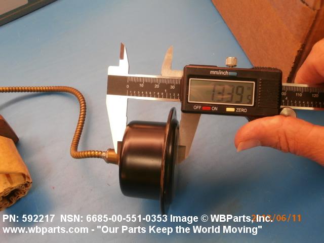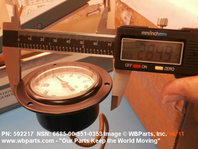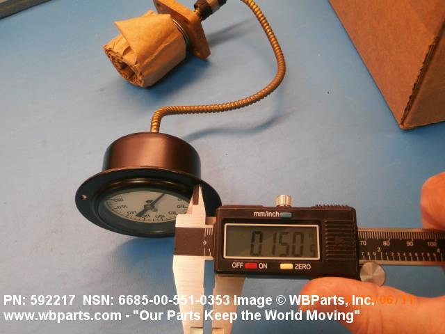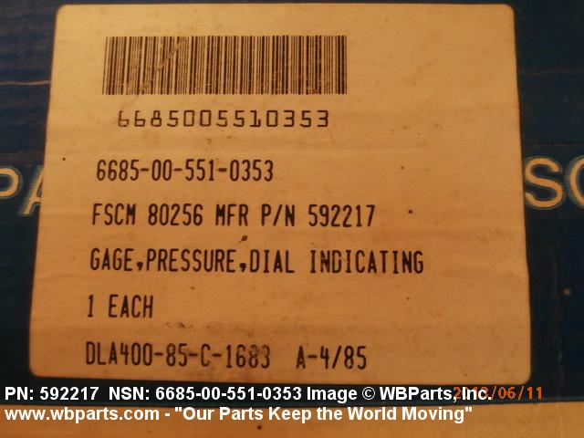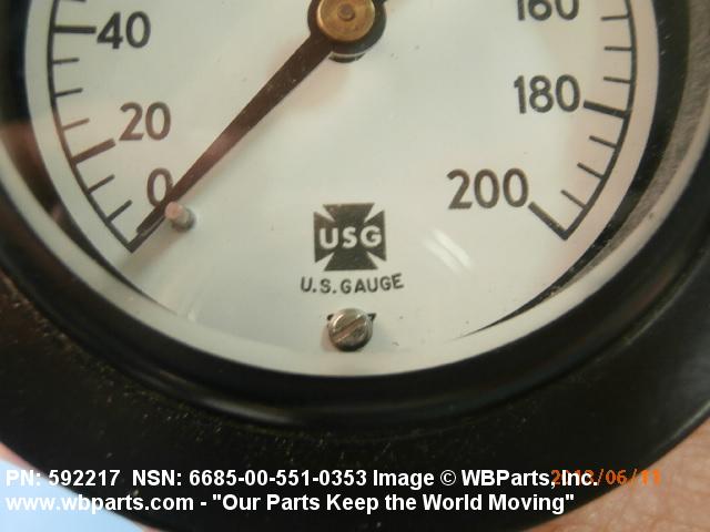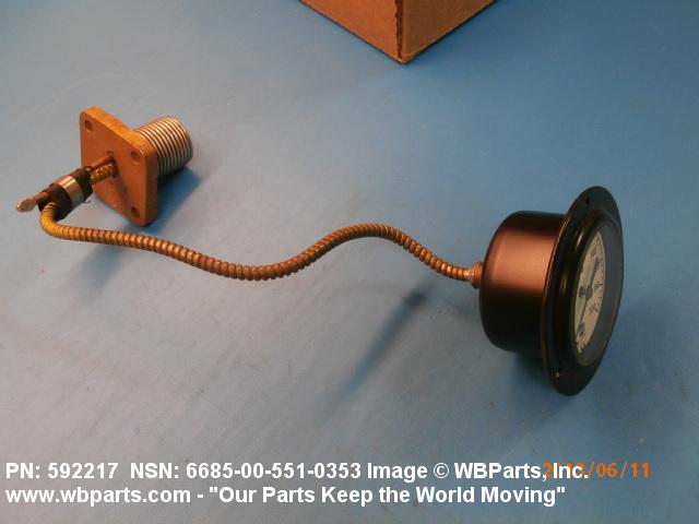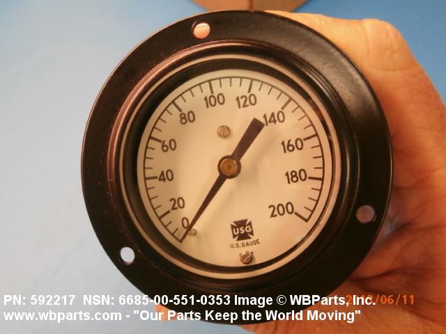6685-00-551-0353 An instrument designed to measure air, gas, fluid, and vapor pressure by means of an internal pressure sensitive element (bellows, bourdon tube, transducer/transmitter and the like) which transmits energy, by direct linkage, to the indicating pointer of a scale or a digital display, calibrated in units of pressure. It may include a temperature equivalent scale. For items that do not have an internal pressure sensitive element see INDICATOR, PRESSURE.205138600004220000042400027Safety and Rescue Equipment66200018Engine Instruments66850073Pressure, Temperature, and Humidity Measuring and Controlling Instruments