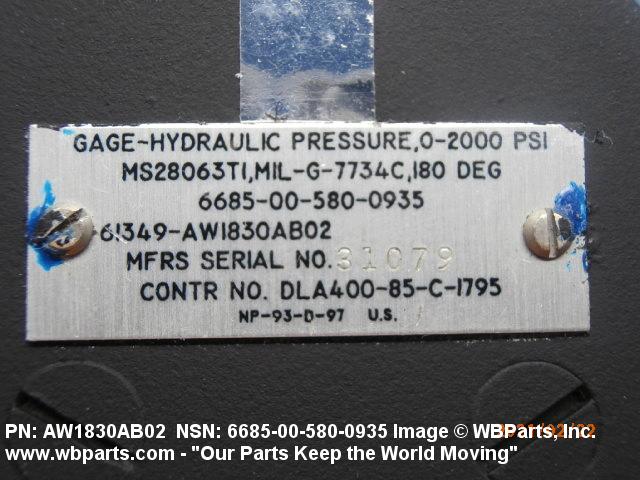 | AW1830AB02 | 61349 | AMETEK, INC. DIV AEROSPACE & DEFENSE |