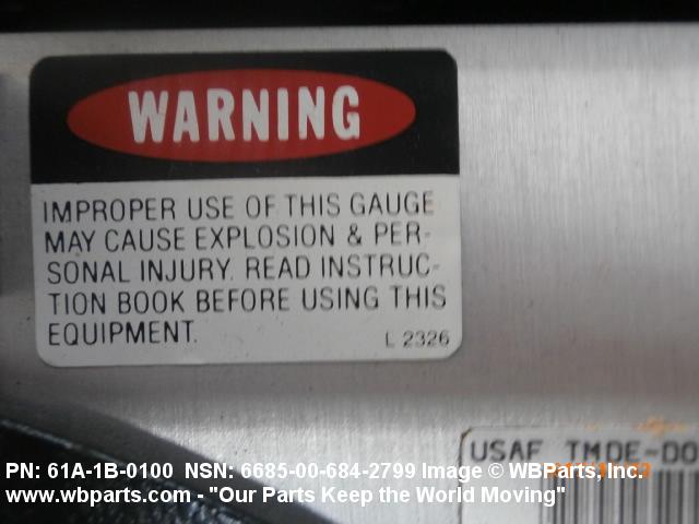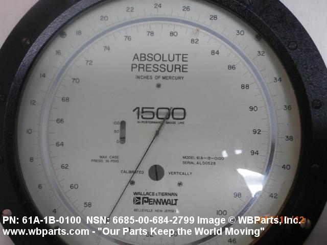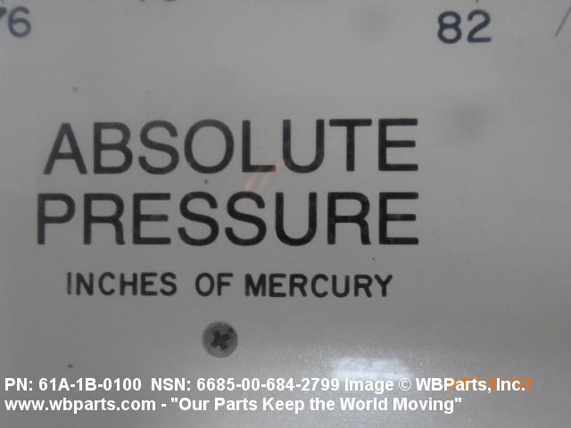 6685-00-684-2799 An instrument designed to measure pressure, and indicate in terms of pressure above vacuum (zero pressure) by means of an internal pressure sensitive element (bellows, bourdon tube, transducer/transmitter and the like) without the necessity of correction or adjustment for barometric or atmospheric pressure. For items that do not have an internal pressure sensitive element see INDICATOR, PRESSURE.20342400027Safety and Rescue Equipment66200018Engine Instruments66850073Pressure, Temperature, and Humidity Measuring and Controlling Instruments