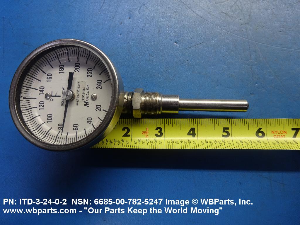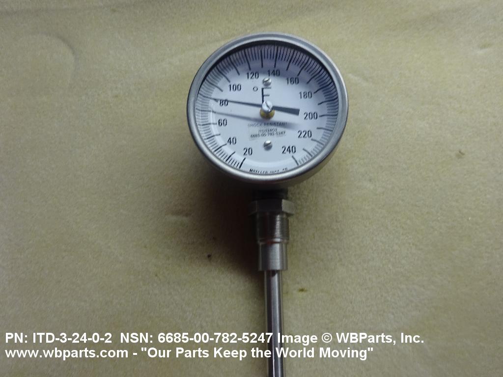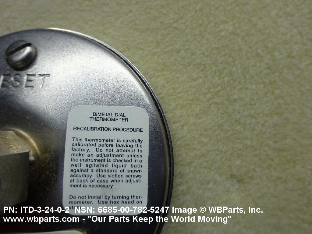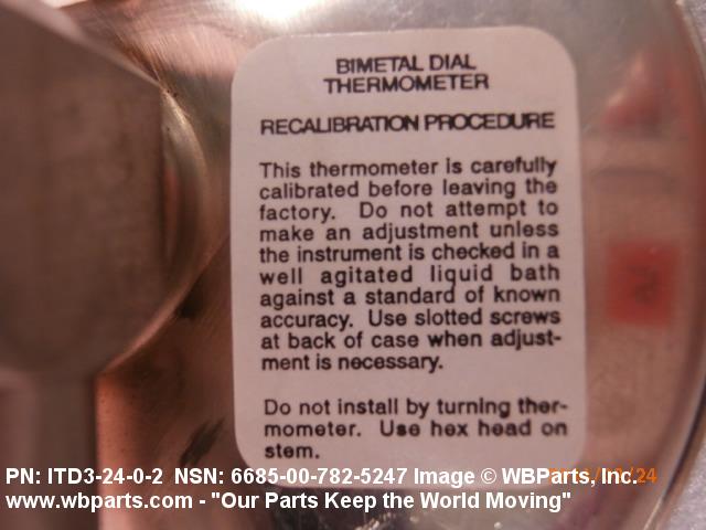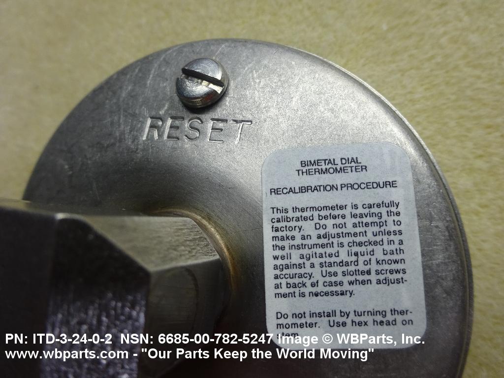 6685-00-782-5247 A thermometer which has a bimetallic substance, whose measurable physical properties, or one of them, change with variation in temperature and self-indicate the temperature to a division or number on a graduated scale(s).