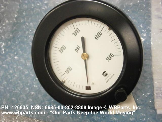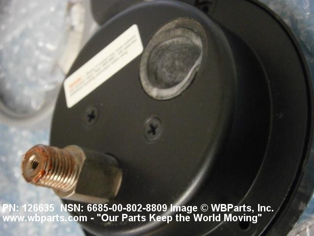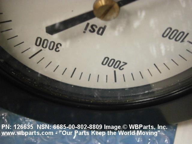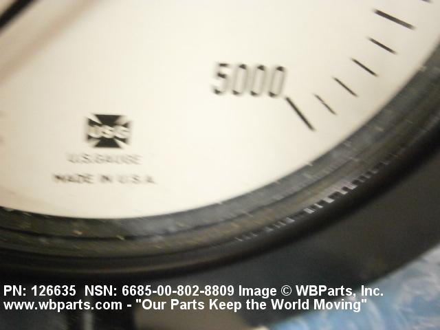 6685-00-802-8809 An instrument designed to measure air, gas, fluid, and vapor pressure by means of an internal pressure sensitive element (bellows, bourdon tube, transducer/transmitter and the like) which transmits energy, by direct linkage, to the indicating pointer of a scale or a digital display, calibrated in units of pressure. It may include a temperature equivalent scale. For items that do not have an internal pressure sensitive element see INDICATOR, PRESSURE.205138600004220000042400027Safety and Rescue Equipment66200018Engine Instruments66850073Pressure, Temperature, and Humidity Measuring and Controlling Instruments