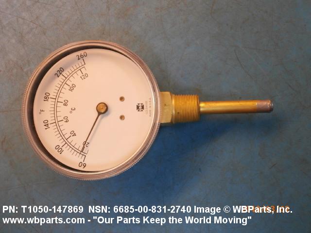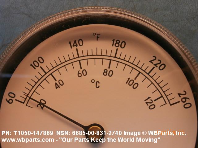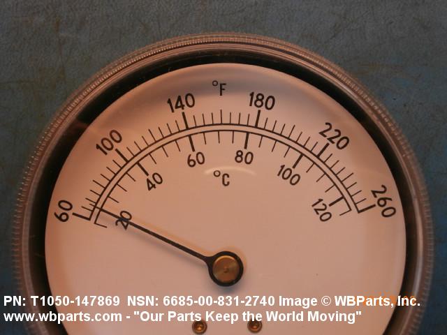 6685-00-831-2740 A thermometer which has a bimetallic substance, whose measurable physical properties, or one of them, change with variation in temperature and self-indicate the temperature to a division or number on a graduated scale(s).