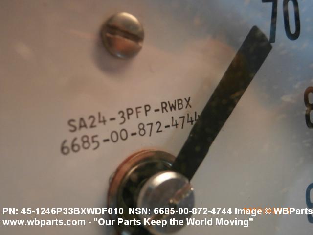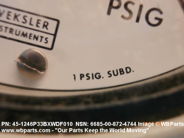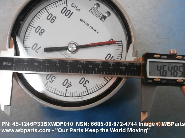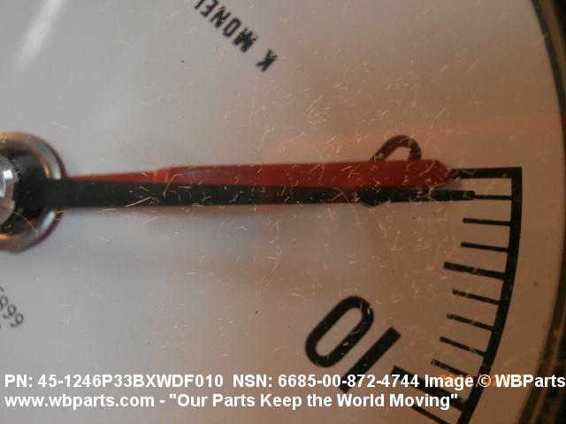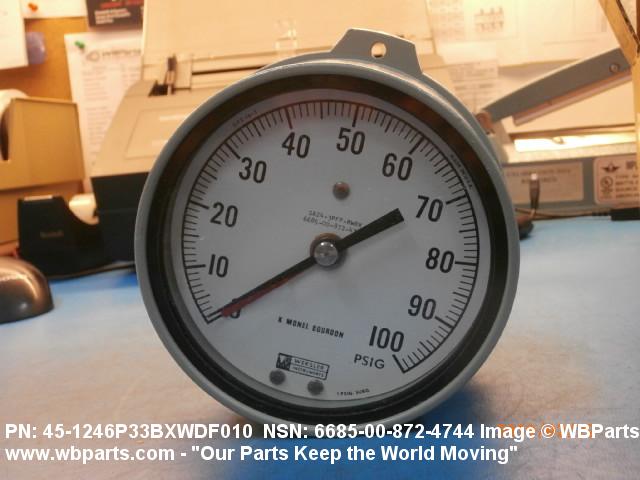 6685-00-872-4744 An instrument designed to measure air, gas, fluid, and vapor pressure by means of an internal pressure sensitive element (bellows, bourdon tube, transducer/transmitter and the like) which transmits energy, by direct linkage, to the indicating pointer of a scale or a digital display, calibrated in units of pressure. It may include a temperature equivalent scale. For items that do not have an internal pressure sensitive element see INDICATOR, PRESSURE.205138600004220000042400027Safety and Rescue Equipment66200018Engine Instruments66850073Pressure, Temperature, and Humidity Measuring and Controlling Instruments
