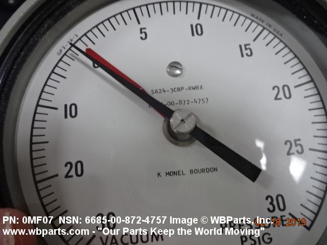 6685-00-872-4757 An instrument designed to measure and indicate pressure and vacuum, on one dial having a divided scale, a single indicating pointer which rotates either clockwise or counterclockwise according to whether pressure is applied or withdrawn.