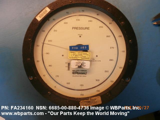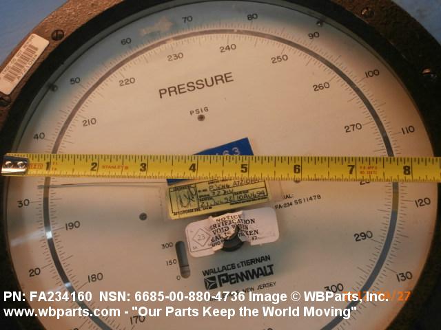 6685-00-880-4736 An instrument designed to measure air, gas, fluid, and vapor pressure by means of an internal pressure sensitive element (bellows, bourdon tube, transducer/transmitter and the like) which transmits energy, by direct linkage, to the indicating pointer of a scale or a digital display, calibrated in units of pressure. It may include a temperature equivalent scale. For items that do not have an internal pressure sensitive element see INDICATOR, PRESSURE.205138600004220000042400027Safety and Rescue Equipment66200018Engine Instruments66850073Pressure, Temperature, and Humidity Measuring and Controlling Instruments