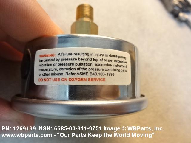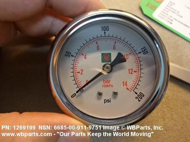 6685-00-911-9751 An instrument designed to measure air, gas, fluid, and vapor pressure by means of an internal pressure sensitive element (bellows, bourdon tube, transducer/transmitter and the like) which transmits energy, by direct linkage, to the indicating pointer of a scale or a digital display, calibrated in units of pressure. It may include a temperature equivalent scale. For items that do not have an internal pressure sensitive element see INDICATOR, PRESSURE.205138600004220000042400027Safety and Rescue Equipment66200018Engine Instruments66850073Pressure, Temperature, and Humidity Measuring and Controlling Instruments