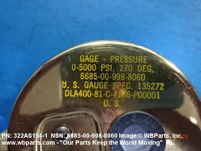 6685-00-998-8060 An instrument designed to measure air, gas, fluid, and vapor pressure by means of an internal pressure sensitive element (bellows, bourdon tube, transducer/transmitter and the like) which transmits energy, by direct linkage, to the indicating pointer of a scale or a digital display, calibrated in units of pressure. It may include a temperature equivalent scale. For items that do not have an internal pressure sensitive element see INDICATOR, PRESSURE.205138600004220000042400027Safety and Rescue Equipment66200018Engine Instruments66850073Pressure, Temperature, and Humidity Measuring and Controlling Instruments