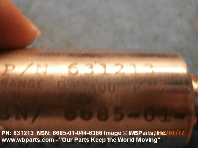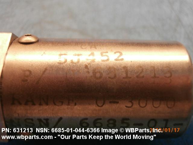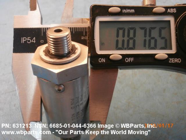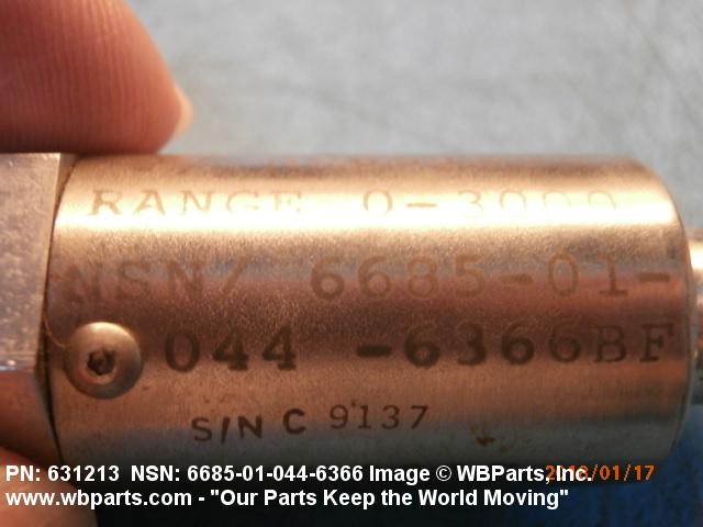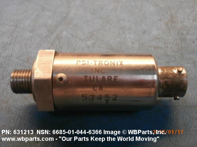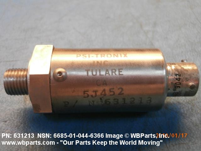 6685-01-044-6366 An instrument that senses, measures and converts pressure of a gas or fluid into electrical signals to be displayed in Pounds per Square Inch (PSI) or the equivalent. The item contains an input pressure port, electrical output connection and may include an output pressure port. See also TRANSDUCER, MOTIONAL PICKUP for items with a linear motional input and electrical output to be displayed in other than PSI or the equivalent.20266200018Engine Instruments66850073Pressure, Temperature, and Humidity Measuring and Controlling Instruments