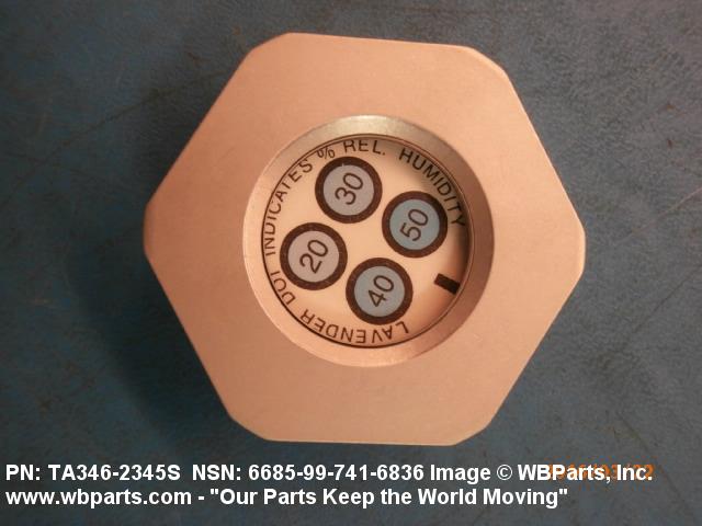 6685-01-045-0469 An item which uses the changing color of a desiccant in the presence of moisture to indicate humidity. The desiccant is in a plug through which the color may be observed and compared with a chart.
