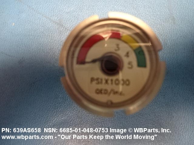 6685-01-048-0753 An instrument designed to measure air, gas, fluid, and vapor pressure by means of an internal pressure sensitive element (bellows, bourdon tube, transducer/transmitter and the like) which transmits energy, by direct linkage, to the indicating pointer of a scale or a digital display, calibrated in units of pressure. It may include a temperature equivalent scale. For items that do not have an internal pressure sensitive element see INDICATOR, PRESSURE.205138600004220000042400027Safety and Rescue Equipment66200018Engine Instruments66850073Pressure, Temperature, and Humidity Measuring and Controlling Instruments