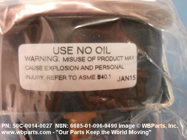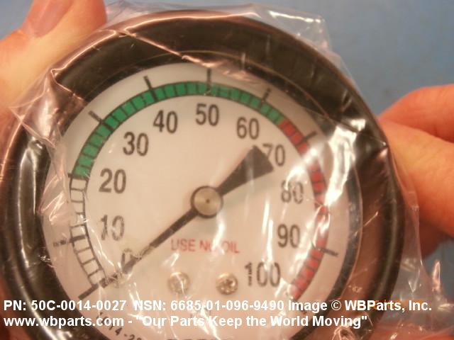 6685-01-096-9490 An instrument designed to measure air, gas, fluid, and vapor pressure by means of an internal pressure sensitive element (bellows, bourdon tube, transducer/transmitter and the like) which transmits energy, by direct linkage, to the indicating pointer of a scale or a digital display, calibrated in units of pressure. It may include a temperature equivalent scale. For items that do not have an internal pressure sensitive element see INDICATOR, PRESSURE.205138600004220000042400027Safety and Rescue Equipment66200018Engine Instruments66850073Pressure, Temperature, and Humidity Measuring and Controlling Instruments
