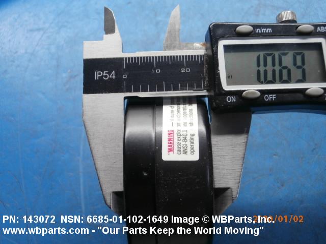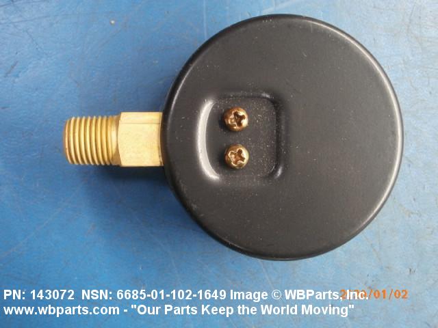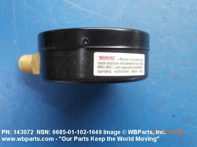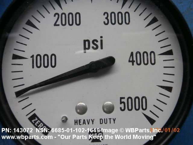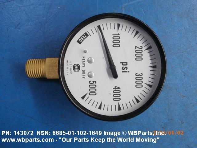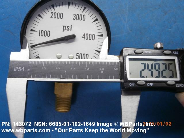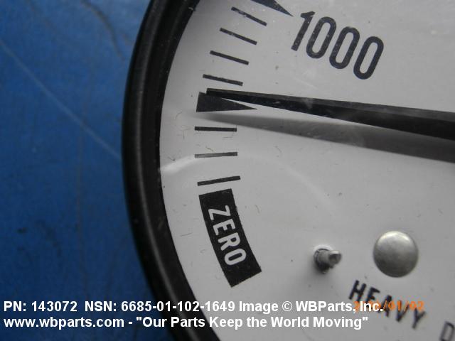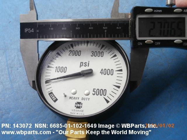 6685-01-102-1649 An instrument designed to measure air, gas, fluid, and vapor pressure by means of an internal pressure sensitive element (bellows, bourdon tube, transducer/transmitter and the like) which transmits energy, by direct linkage, to the indicating pointer of a scale or a digital display, calibrated in units of pressure. It may include a temperature equivalent scale. For items that do not have an internal pressure sensitive element see INDICATOR, PRESSURE.205138600004220000042400027Safety and Rescue Equipment66200018Engine Instruments66850073Pressure, Temperature, and Humidity Measuring and Controlling Instruments
