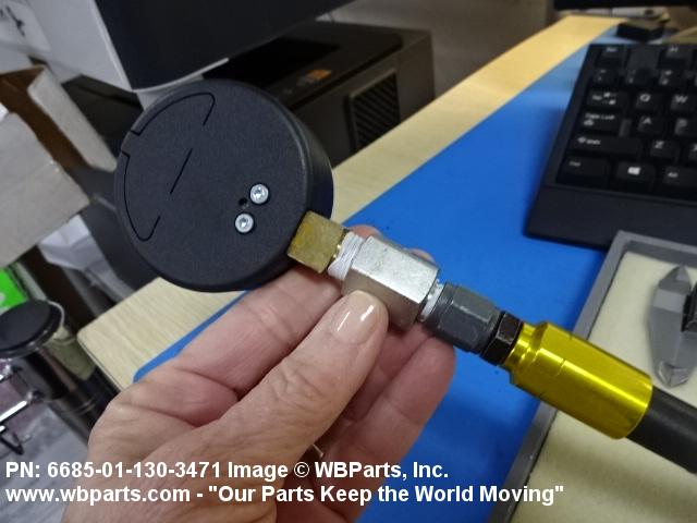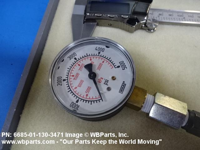 6685-01-130-3471 An instrument designed to measure air, gas, fluid, and vapor pressure by means of an internal pressure sensitive element (bellows, bourdon tube, transducer/transmitter and the like) which transmits energy, by direct linkage, to the indicating pointer of a scale or a digital display, calibrated in units of pressure. It may include a temperature equivalent scale. For items that do not have an internal pressure sensitive element see INDICATOR, PRESSURE.205138600004220000042400027Safety and Rescue Equipment66200018Engine Instruments66850073Pressure, Temperature, and Humidity Measuring and Controlling Instruments
