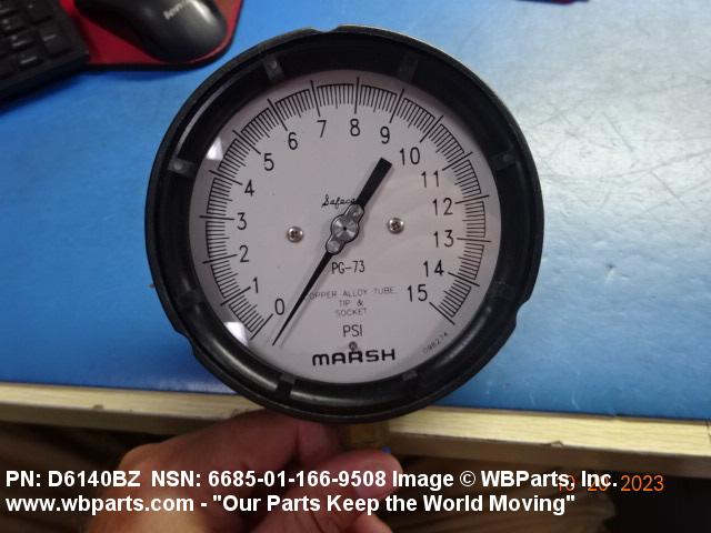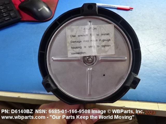 6685-01-166-9508 An instrument designed to measure air, gas, fluid, and vapor pressure by means of an internal pressure sensitive element (bellows, bourdon tube, transducer/transmitter and the like) which transmits energy, by direct linkage, to the indicating pointer of a scale or a digital display, calibrated in units of pressure. It may include a temperature equivalent scale. For items that do not have an internal pressure sensitive element see INDICATOR, PRESSURE.205138600004220000042400027Safety and Rescue Equipment66200018Engine Instruments66850073Pressure, Temperature, and Humidity Measuring and Controlling Instruments