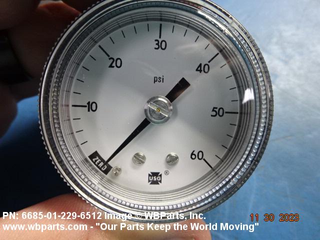 6685-01-229-6512 An instrument designed to measure air, gas, fluid, and vapor pressure by means of an internal pressure sensitive element (bellows, bourdon tube, transducer/transmitter and the like) which transmits energy, by direct linkage, to the indicating pointer of a scale or a digital display, calibrated in units of pressure. It may include a temperature equivalent scale. For items that do not have an internal pressure sensitive element see INDICATOR, PRESSURE.205138600004220000042400027Safety and Rescue Equipment66200018Engine Instruments66850073Pressure, Temperature, and Humidity Measuring and Controlling Instruments