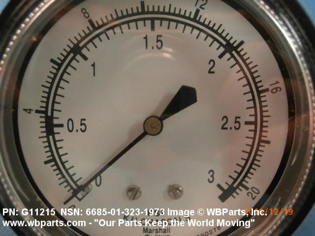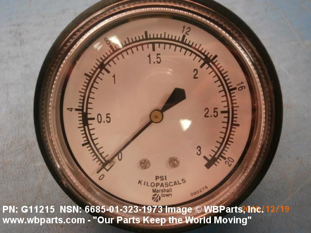 6685-01-323-1973 An instrument designed to measure air, gas, fluid, and vapor pressure by means of an internal pressure sensitive element (bellows, bourdon tube, transducer/transmitter and the like) which transmits energy, by direct linkage, to the indicating pointer of a scale or a digital display, calibrated in units of pressure. It may include a temperature equivalent scale. For items that do not have an internal pressure sensitive element see INDICATOR, PRESSURE.205138600004220000042400027Safety and Rescue Equipment66200018Engine Instruments66850073Pressure, Temperature, and Humidity Measuring and Controlling Instruments