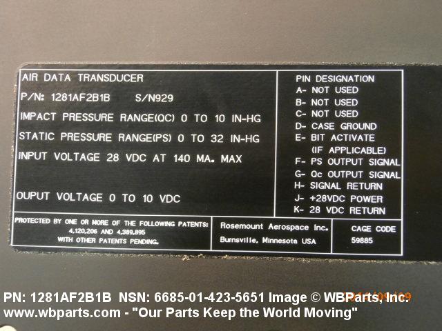 | 1281AF2B1B | 59885 | ROSEMOUNT AEROSPACE INC. DBA A UTC AEROSPACE SYSTEMS COMPANY |