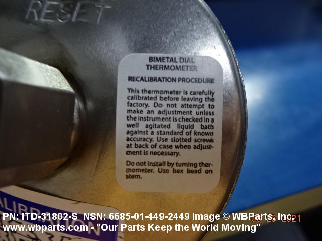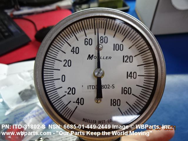 6685-01-449-2449 A thermometer which has a bimetallic substance, whose measurable physical properties, or one of them, change with variation in temperature and self-indicate the temperature to a division or number on a graduated scale(s).