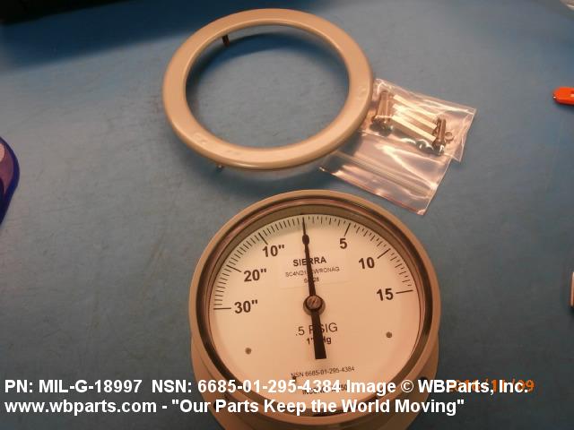 6685-01-449-8435 An instrument designed to measure air, gas, fluid, and vapor pressure by means of an internal pressure sensitive element (bellows, bourdon tube, transducer/transmitter and the like) which transmits energy, by direct linkage, to the indicating pointer of a scale or a digital display, calibrated in units of pressure. It may include a temperature equivalent scale. For items that do not have an internal pressure sensitive element see INDICATOR, PRESSURE.205138600004220000042400027Safety and Rescue Equipment66200018Engine Instruments66850073Pressure, Temperature, and Humidity Measuring and Controlling Instruments