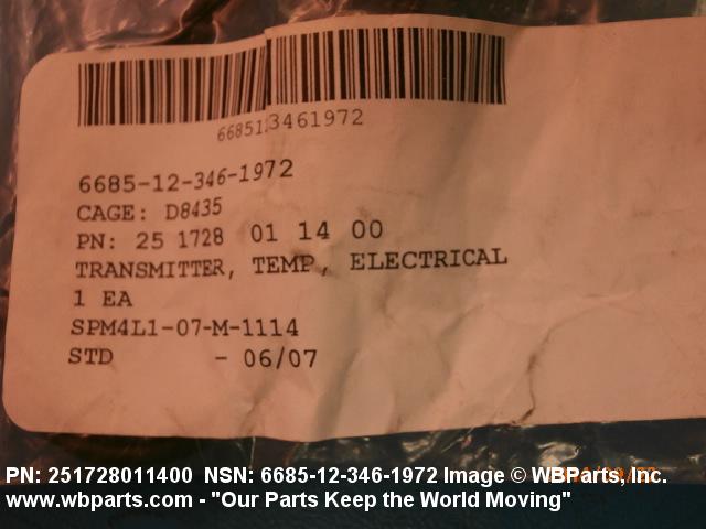 Part Alternates: 251728011400, 6685-12-346-1972, 12-346-1972, 6685123461972, 123461972