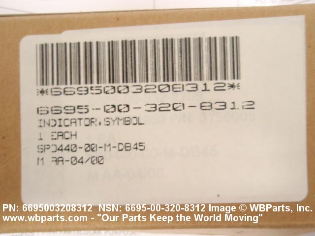 6695-00-320-8312 An electrically operated indicator, consisting principally of a cylindrical rotating card, or the like, which exhibits symbols or markings before a single window in a case. Excludes indicators having graduated scale dials. Also excludes INDICATOR, DIGITAL DISPLAY; INDICATOR, POSITION; and INDICATOR (as modified).