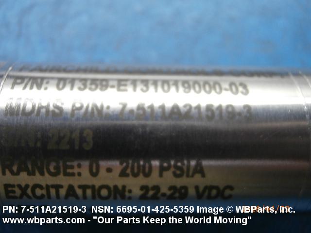 Part Alternates: E13101900003, E131019000-03, 7511A215193, 7-511A21519-3, 6695-01-425-5359, 01-425-5359, 6695014255359, 014255359