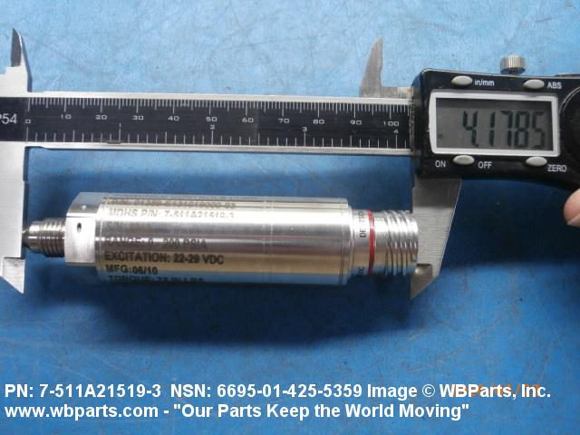 6695-01-425-5359 An instrument that senses, measures and converts pressure of a hydraulic fluid into electrical signals. The item contains at least one (1) input pressure port and one (1) electrical output connection. The instrument may measure absolute, differential or gage pressure. The sensor may be of the piezoresistive diaphragm, diaphragm with semiconductor strain gage, or foil strain gage construction. Electrical output may be direct or alternating current.
