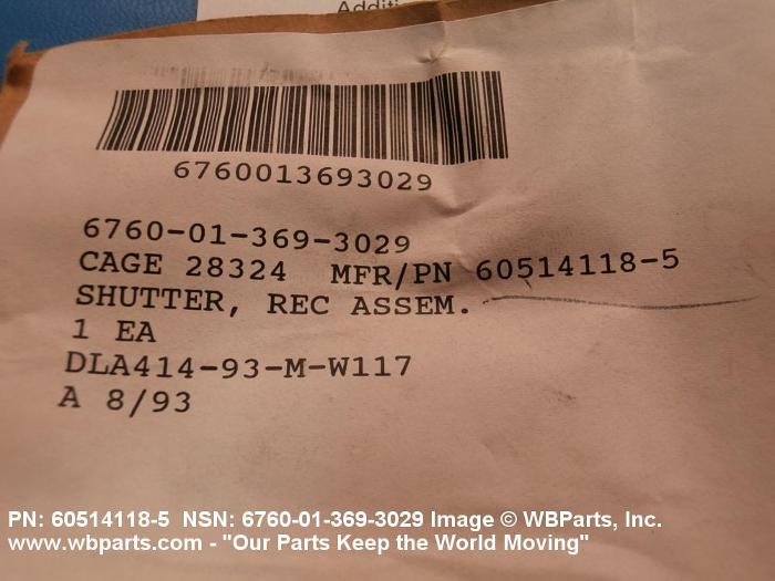 NSN 6760-01-369-3029 60514118-5, 01-369-3029, 605141185