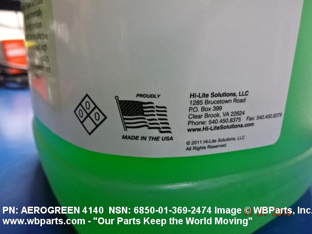 NSN 6850-01-369-2474 AERO-GREEN 4140/GL , AEROGREEN4140GL, HURRI-SAFE DEGREASER