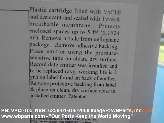 | SPECIAL FEATURES | PLASTIC EMITTERS WITH BREATHABLE TYVEK MEMBRANES; USED TO PROTECT UP TO 5 CUBIC FEET (140 LITERS) OF ENCLOSED SPACE FOR TWO YEARS; NON-TOXIC, FREE OF NITRITES, SILICONES AND PHOSPHATES |