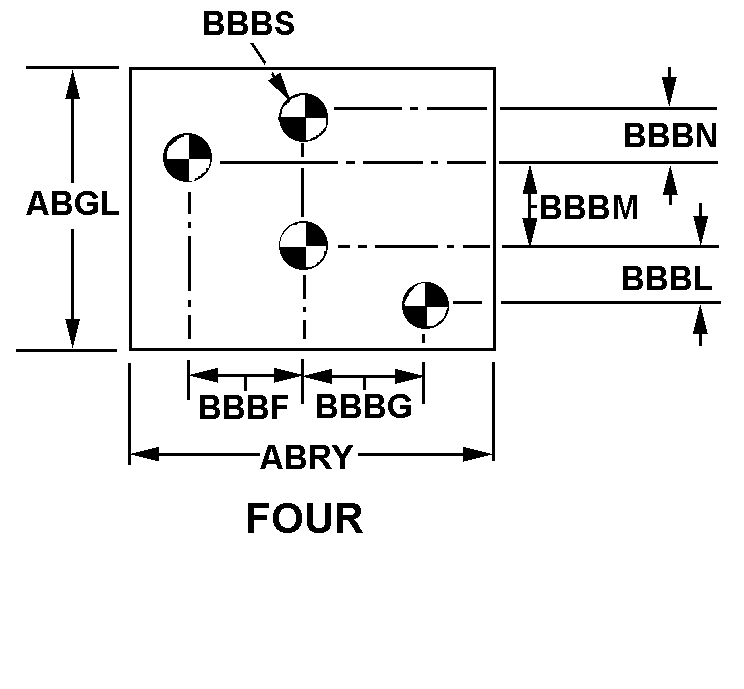 | VERTICAL DISTANCE BETWEEN FIRST AND SECOND QUARTERED CIRCLE CENTERS | 6.688 INCHES NOMINAL |