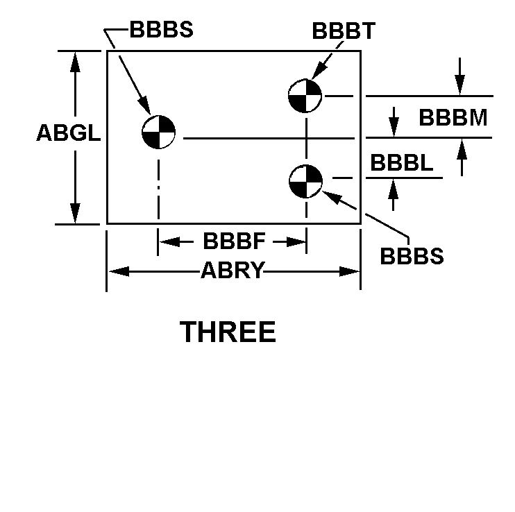 | VERTICAL DISTANCE BETWEEN FIRST AND SECOND QUARTERED CIRCLE CENTERS | 12.985 INCHES NOMINAL |