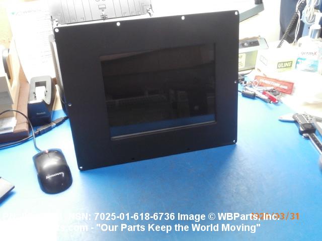 7025-01-618-6736 An indicator unit on which computer information is visually displayed. Indication of data may be achieved by cathode ray tubes, plasma display, light emitting diodes, crystal display or the like. For items which also include an input section such as a keyboard, cursor, or rolling ball, see TERMINAL, DATA PROCESSING.