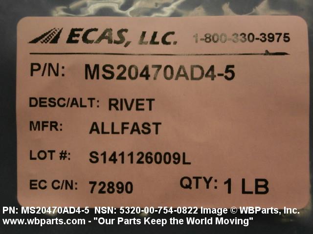 NSN 7290-00-754-0843 MS20470AD45, MS20470AD4-5 , AN470AD45